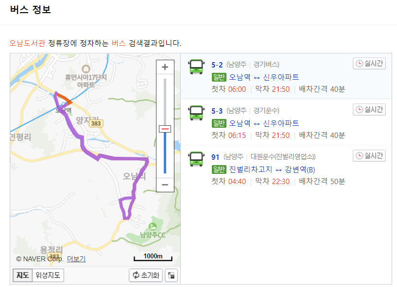 남양주 오남도서관 버스 교통편 햇살정원 달빛정원 알아보기